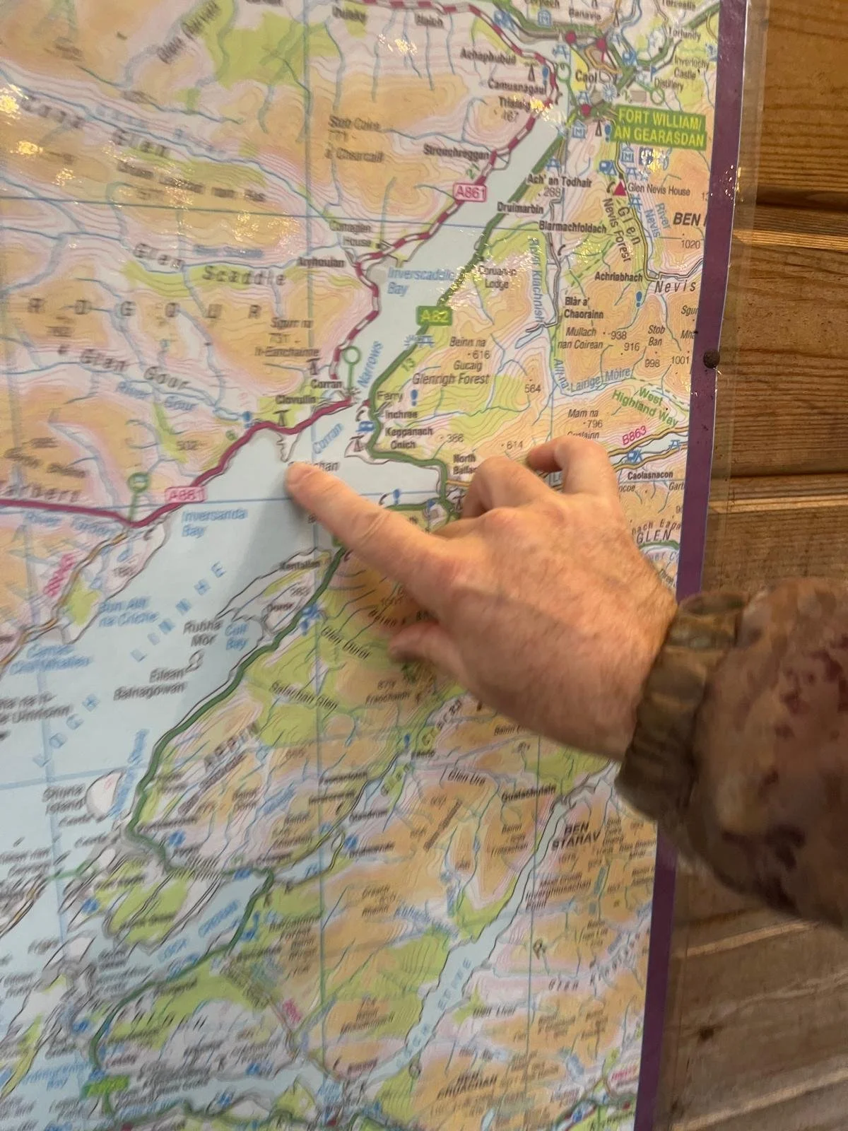 We walk 4 miles on the almost-carless single track tarmac to the Corran ferry. That stretch is wonderfully rain-free, but as soon as we cross on the tiny Corran ferry (as the only foot passengers) we enter a totally rain soaked day, walking on the pavement along the unbelievably busy A82 that runs from Fort William down to Glasgow.