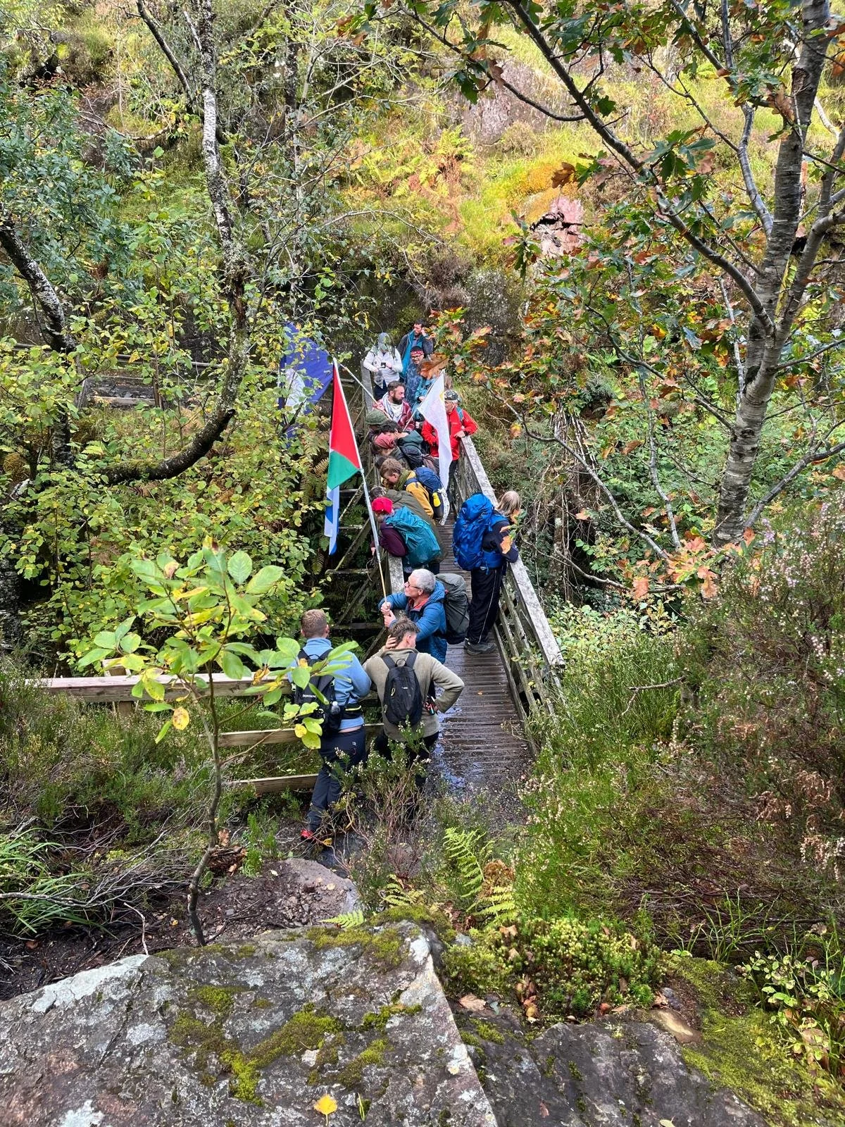 Ben - our route master - takes us down to a wee bridge over the rushing waters, then we navigate the pass - the point I’ve been most concerned about for the whole walk.