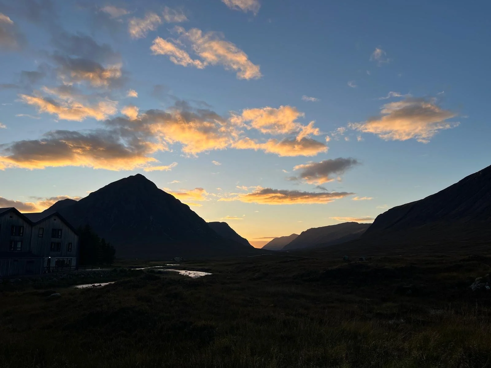 Eventually we see - in the far distance - the big building that is Kingshouse with its stack of tall trees on either side. Strange to be able to so clearly see where we are walking to, yet it be so far off.