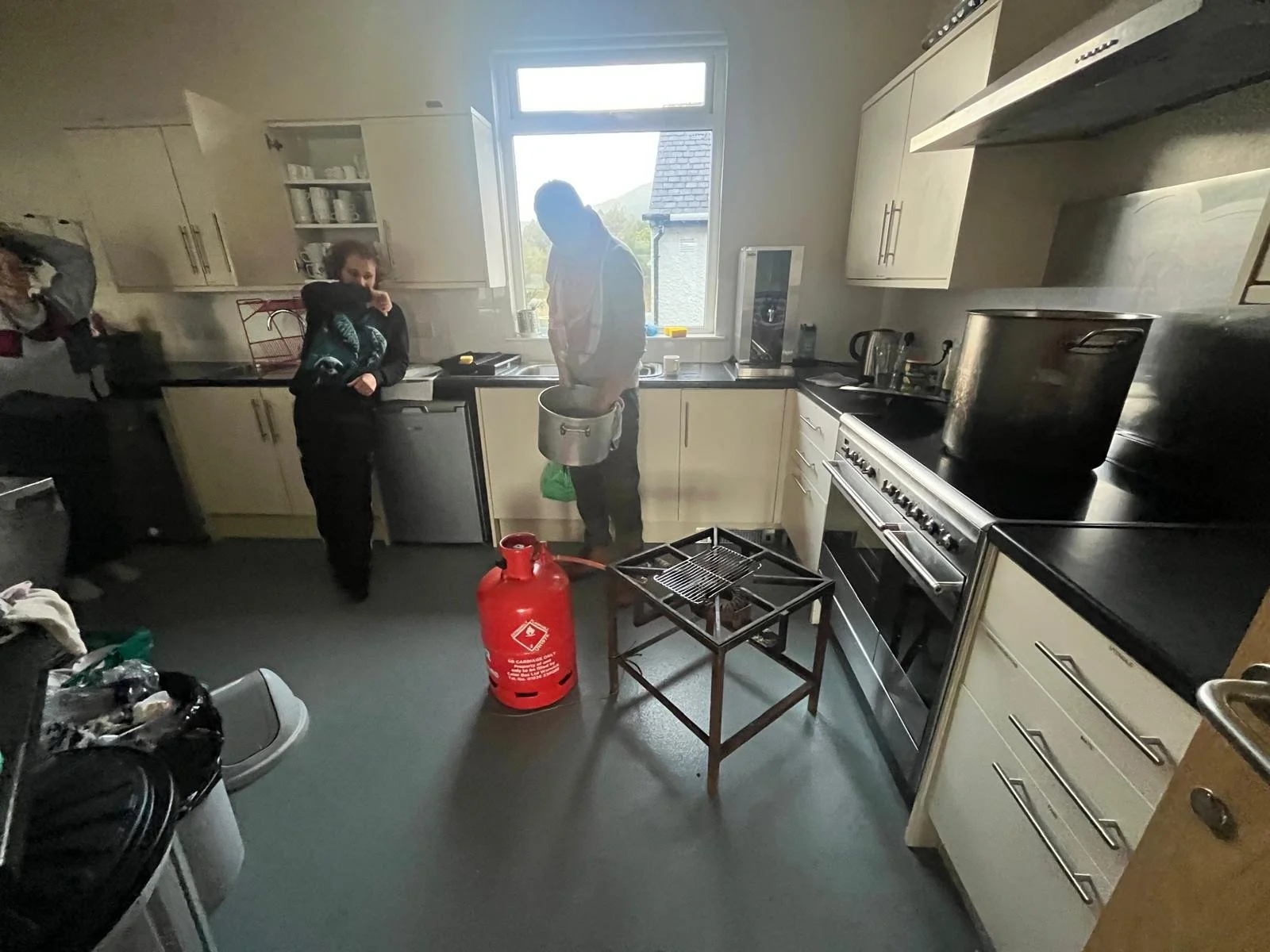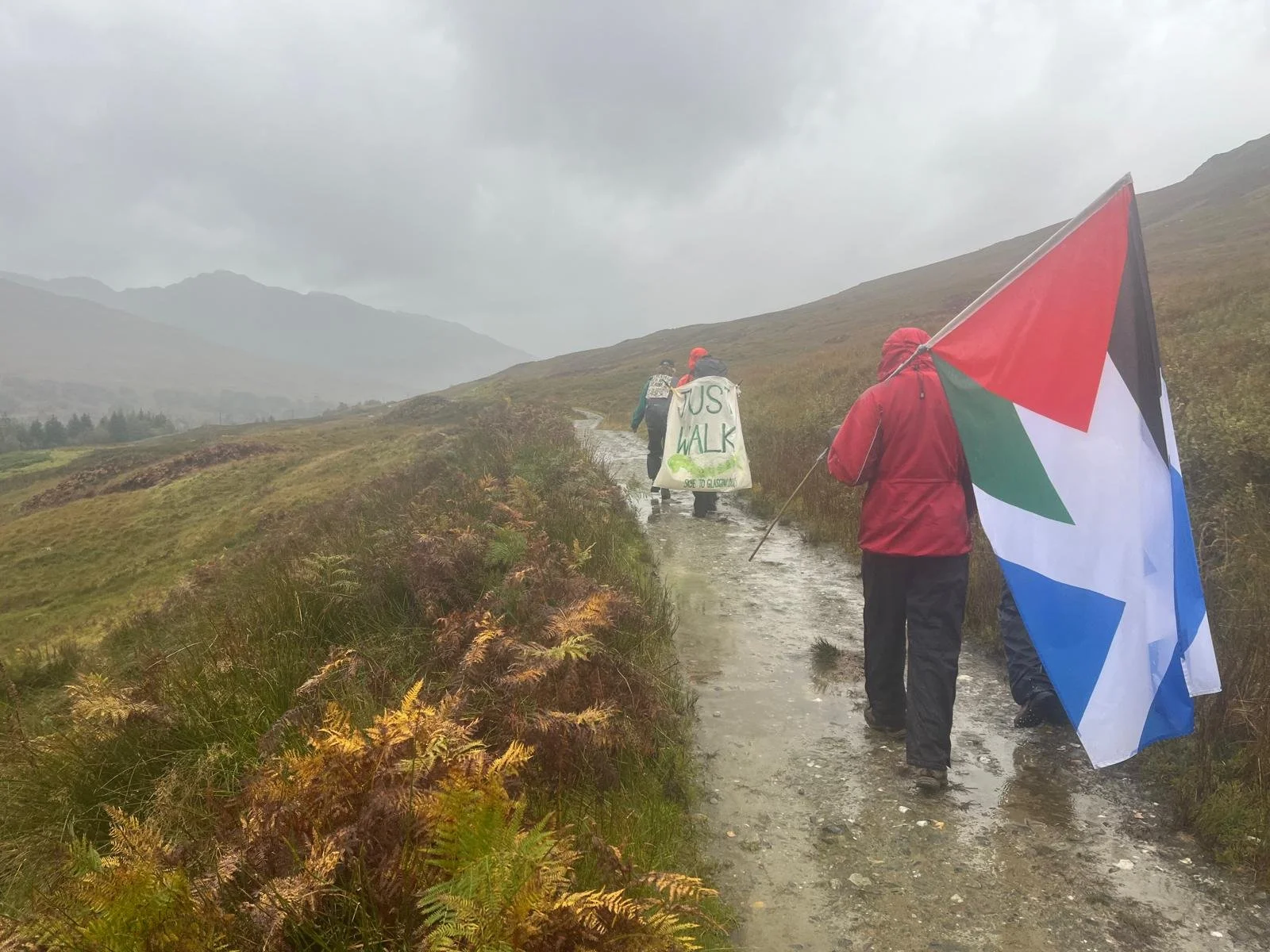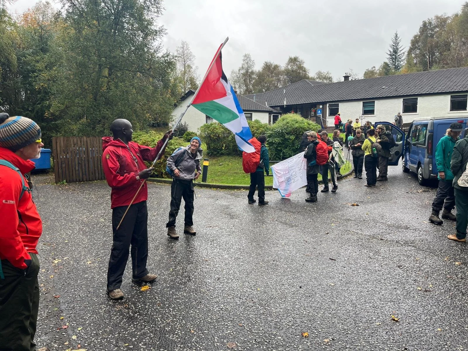 Cassi is a local who has responded to the call for help to ferry us from Invesnaid to Kinlochard Village Hall (several miles away through the storm) where Gulia has arranged for us to stay. The call for help went out through the local Palestine support network.