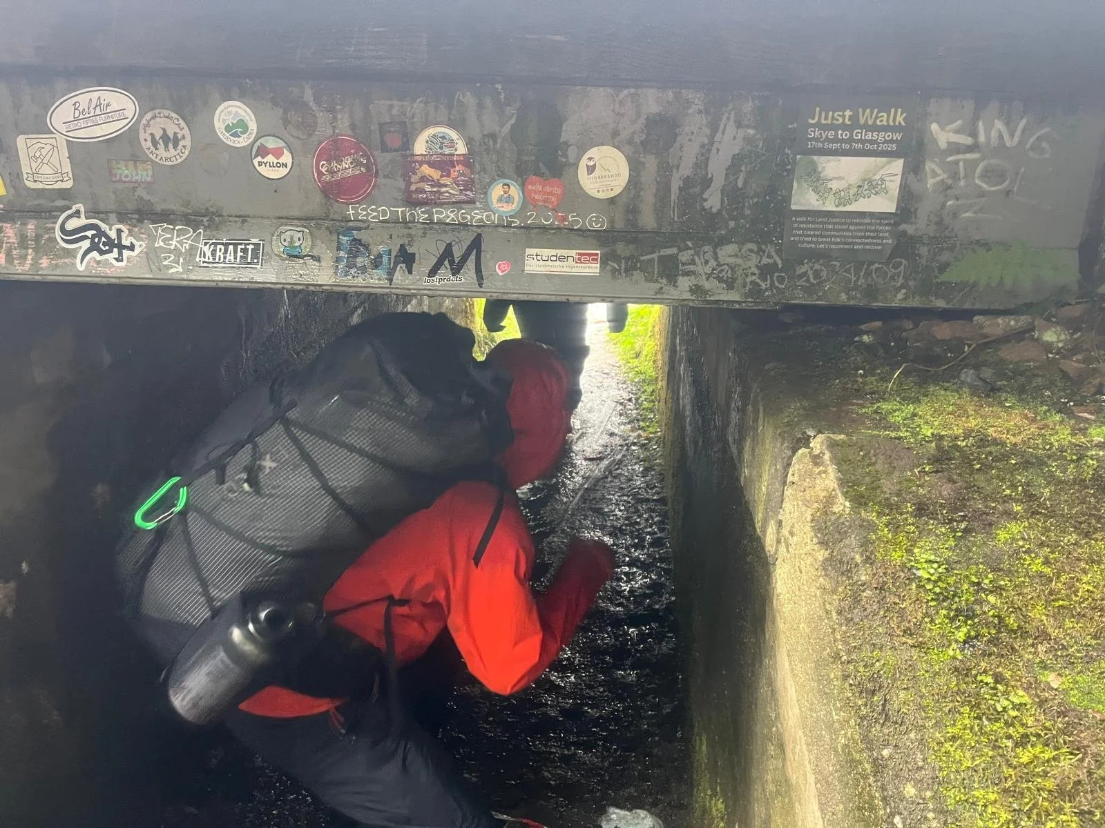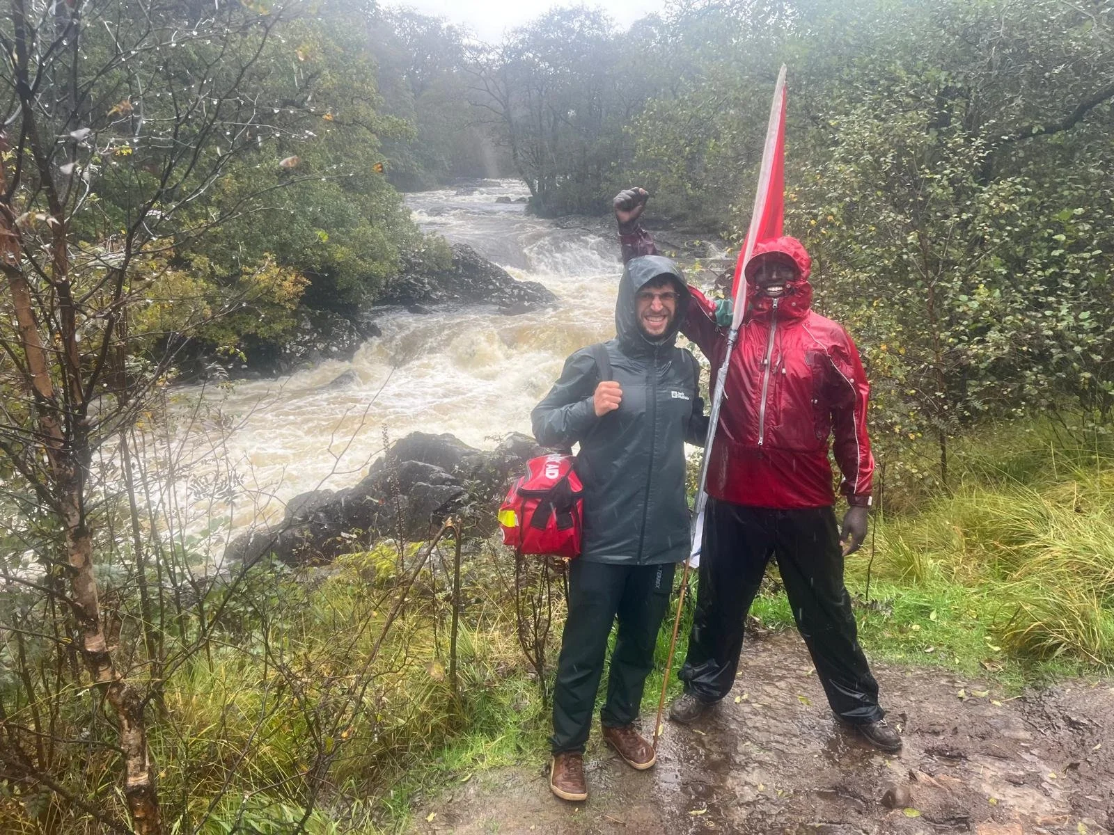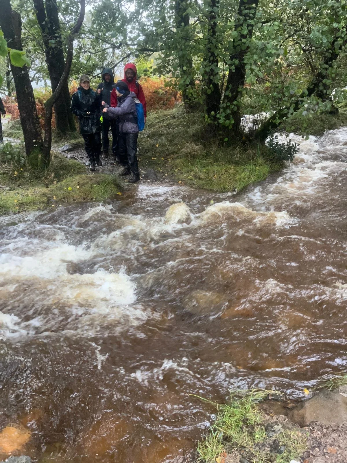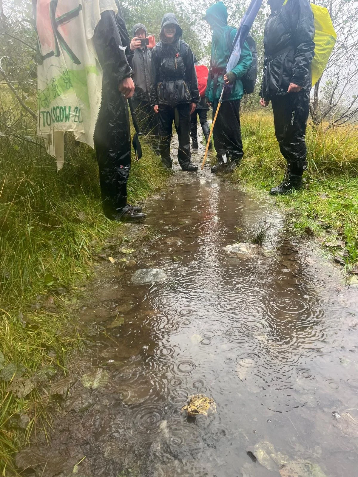“Just arrived Inversnaid through the storm. Stunningly beautiful night walk with trees shouting agreement and waves crashing their support. Looking forward to the vans ferrying us to a warm hall floor to sleep on. Well done everyone!”