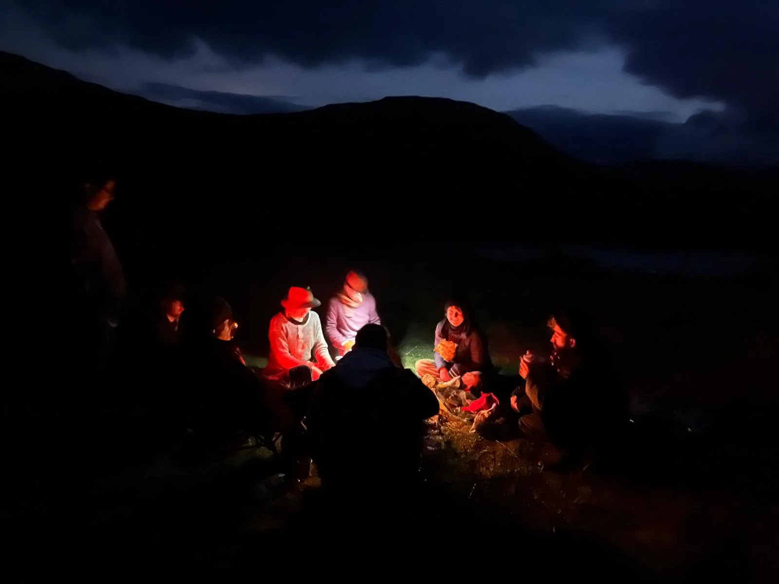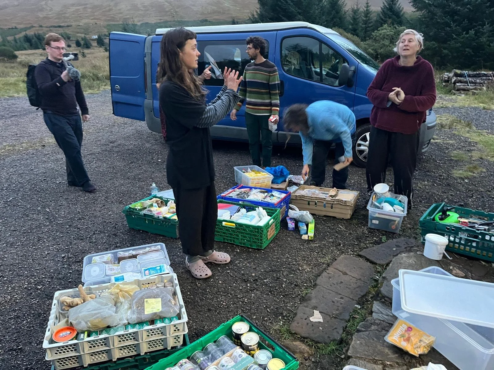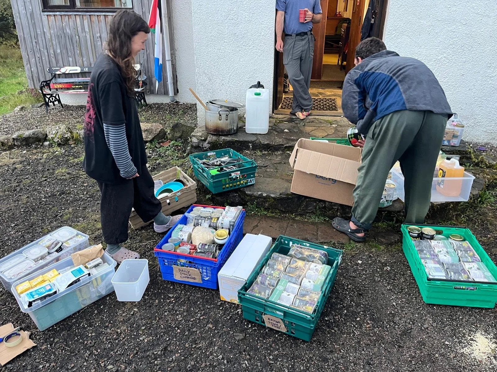 Having had only a short walk, there is time for Poppy and Ben to lead in sorting out the myriad boxes of supplies that have vanished and jumbled in the vans, and in the evening there is time to talk by the welcome indoor fire.