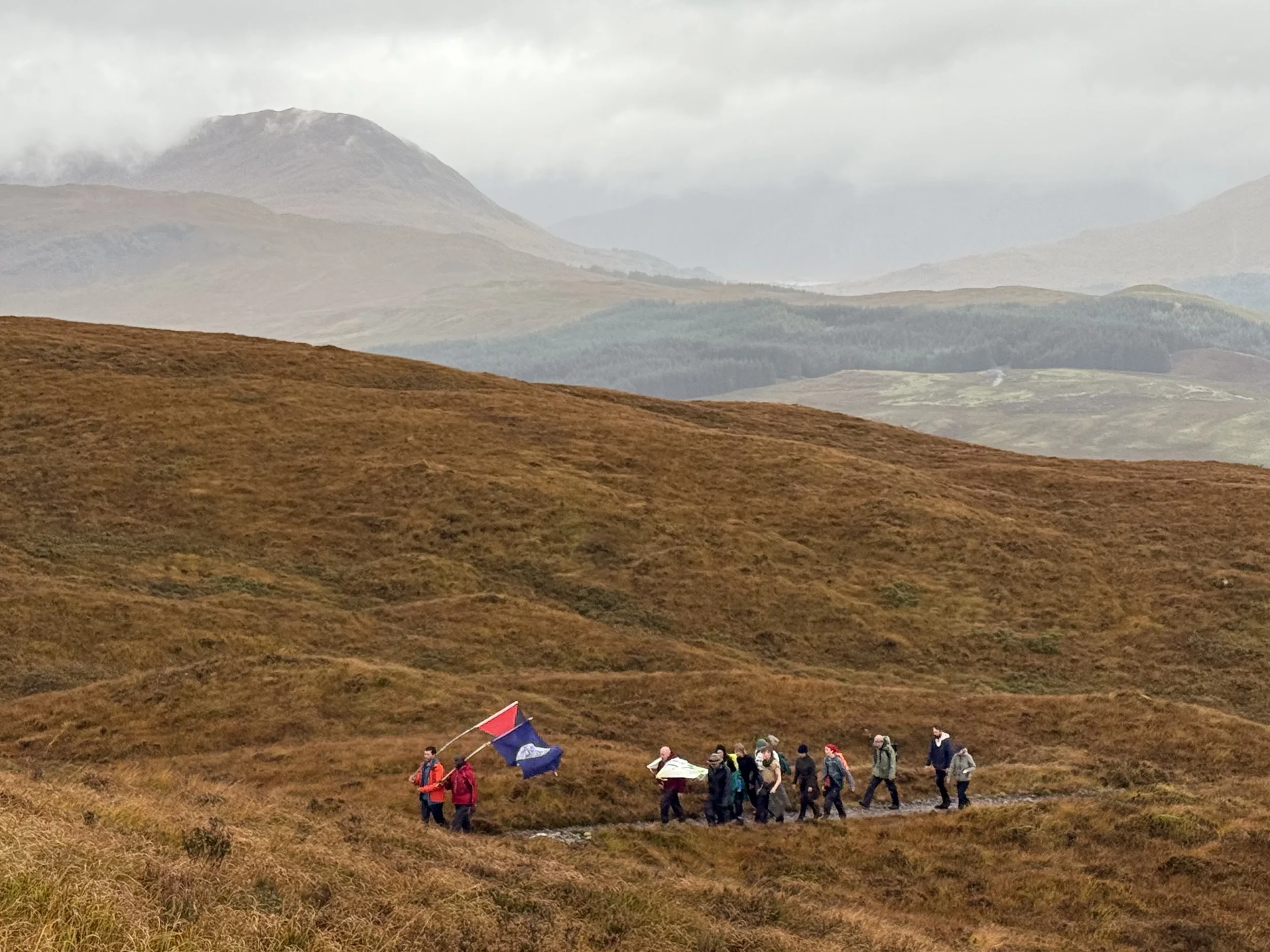 We have a brief meeting after lunch where we decide to Assemble in the evening for practicalities and to discuss how we walk into Glasgow, and leave the larger Assembly on land justice until the Crianlarich afternoon.
