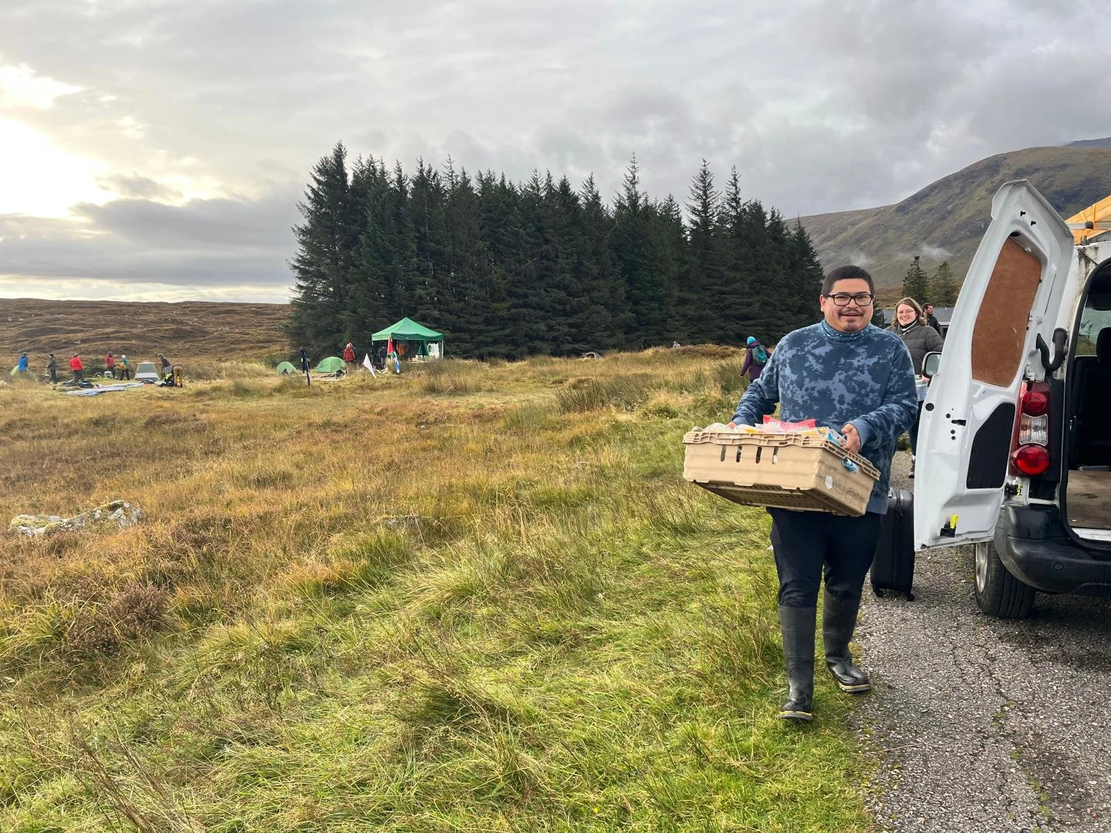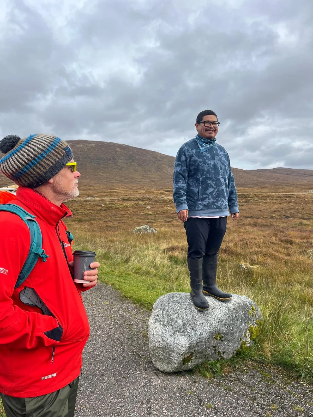 In the morning Kipchumba alights from the train at Bridge of Orchy and joins us. Kipchumba is from the Sengwer indigenous people of the Cherangany Hills in Kenya.