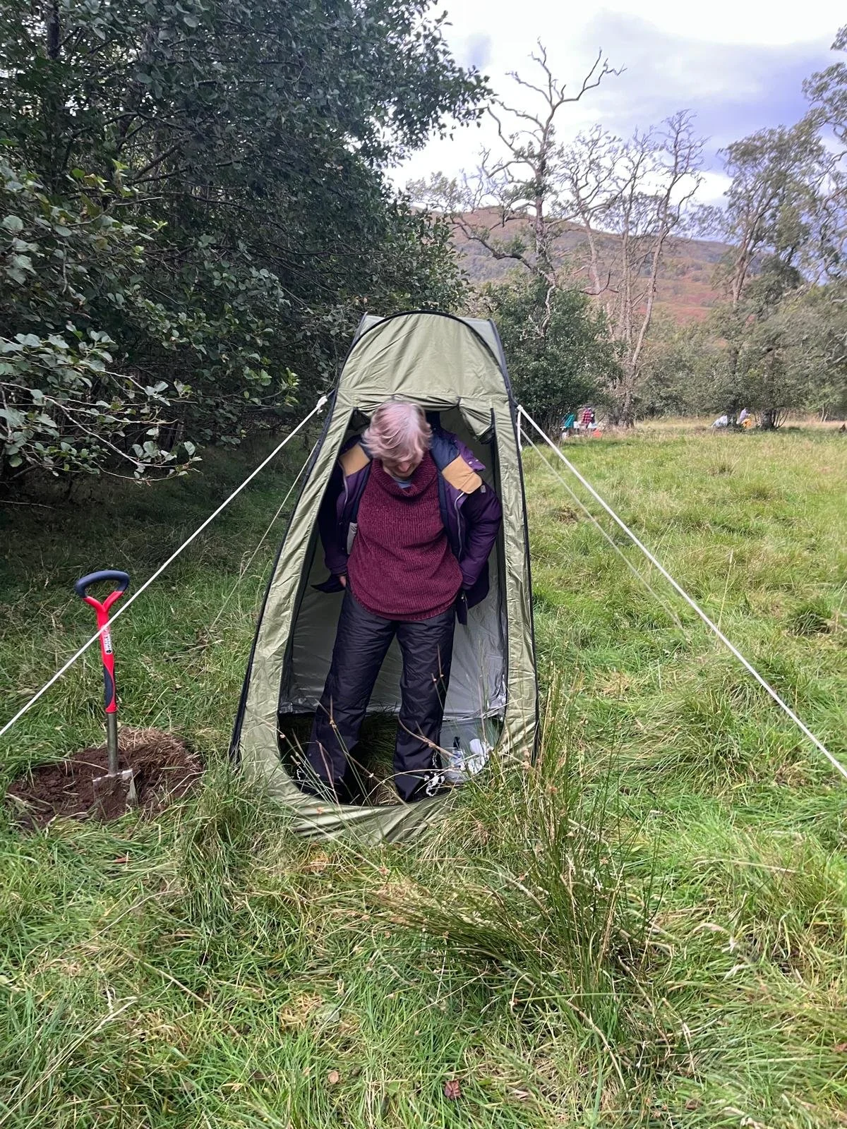 The driving and cooking crew (of Eva, the two Davids and Gabs) have cooked up a delicious pasta meal, and set up many of the tents, as well as the toilet tent a bit away. No need for the gazebo because there is thankfully no rain. We arrive in the semi-dark, with many picking dozens of ticks off themselves. We go to sleep within the sound of the river, with the sea not far away.