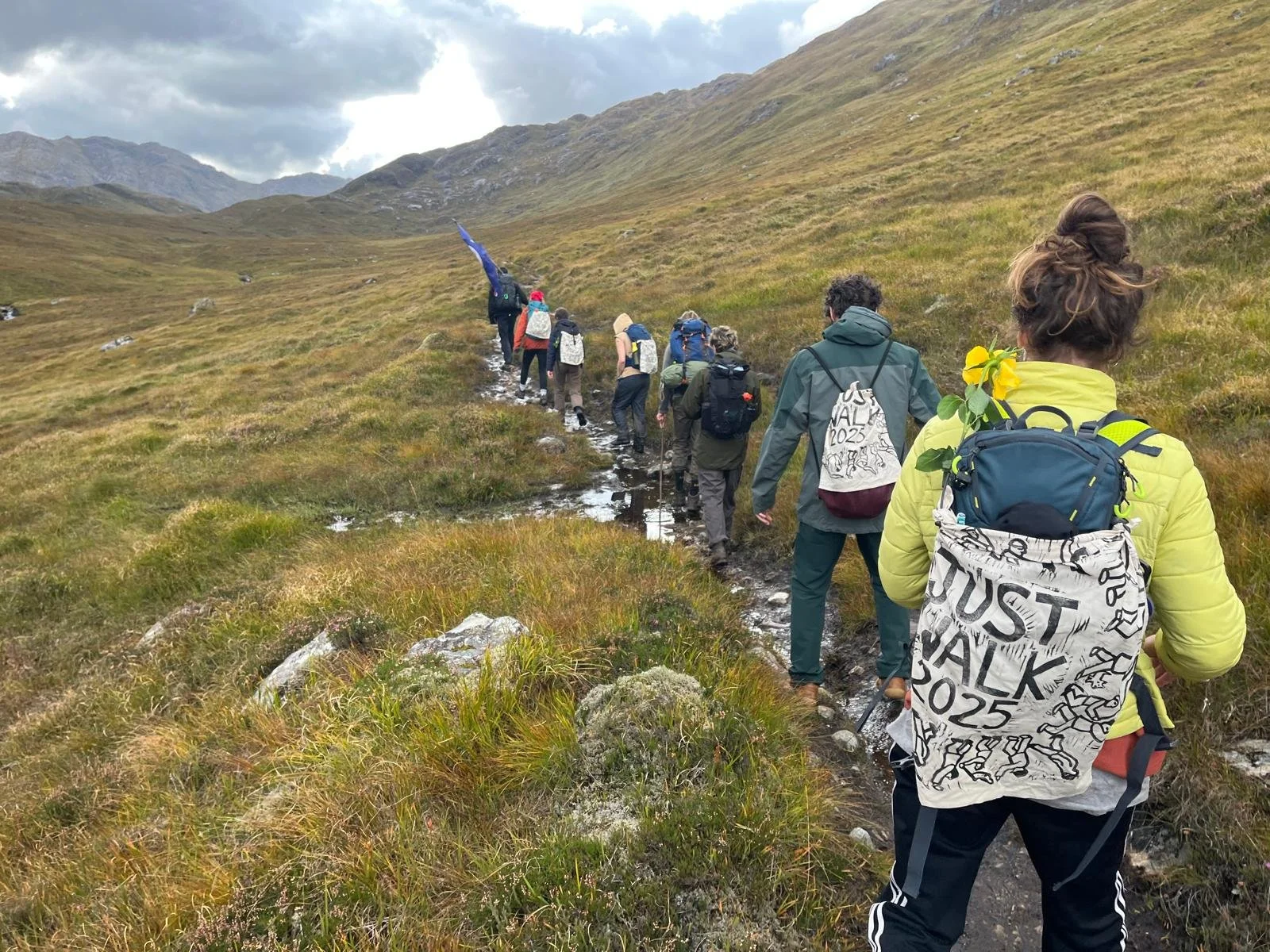 Manu, who one of the vans picked up as he was trying to hitch hike to Skye, is walking with us. His van is in a garage at Broadford where the walk began, but he is now heading the opposite way with us. He asks about conservation in Africa and I explain how conservation organisations see beautiful land and then throw off the very communities who have conserved that land and so made it attractive to conservationists. I give the example of Mount Elgon, straddling the Kenya/ Uganda border, where the Ogiek community on the Kenya side has managed to stay on their land and so the elephants and biodiversity flourish. In contrast, on the Uganda side, the Mosopisyek have been thrown off their land to make way for conservation’s control, and the result is that much of the wildlife, including all the elephants, have been completely destroyed.
